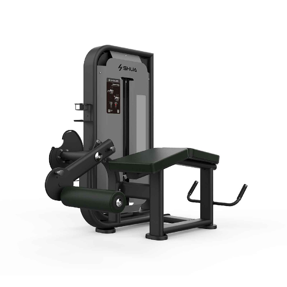 主要功能 锻炼股二头肌1、阻力形式:配重块;总重100kg;最小调节重量5kg2、垫类(坐/背/ 胸/肘垫):勾脚套PU发泡成型;胸垫、腹垫再生棉、原生棉成型3、最大人体承重:150kg4、主要管材规格:龙门架平椭150502.0mm,副架平椭120502.0mm5、牵索形式:日本进口钢丝绳;¢5.6mm6、轴承:人本轴承;6205、62067、滑轮